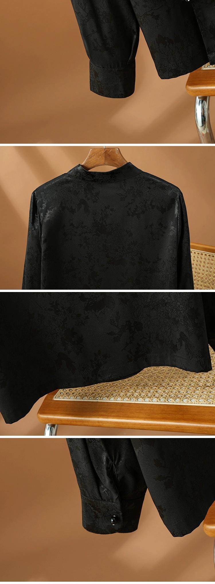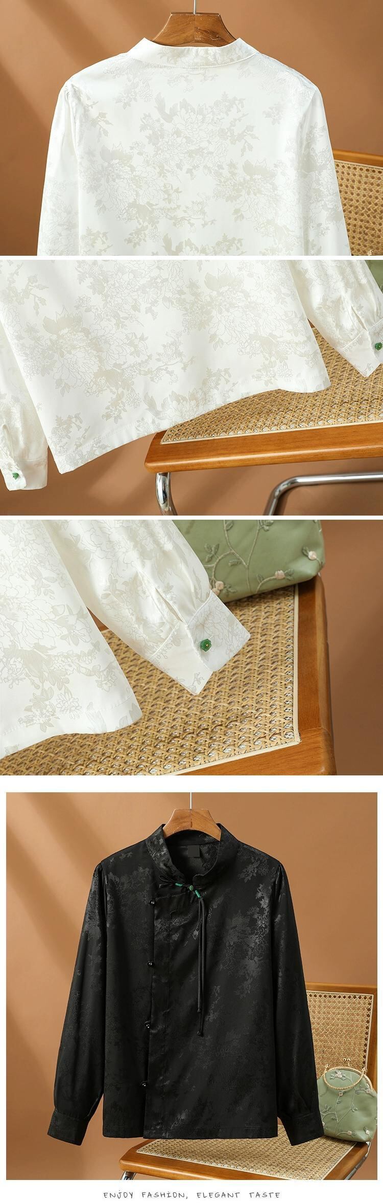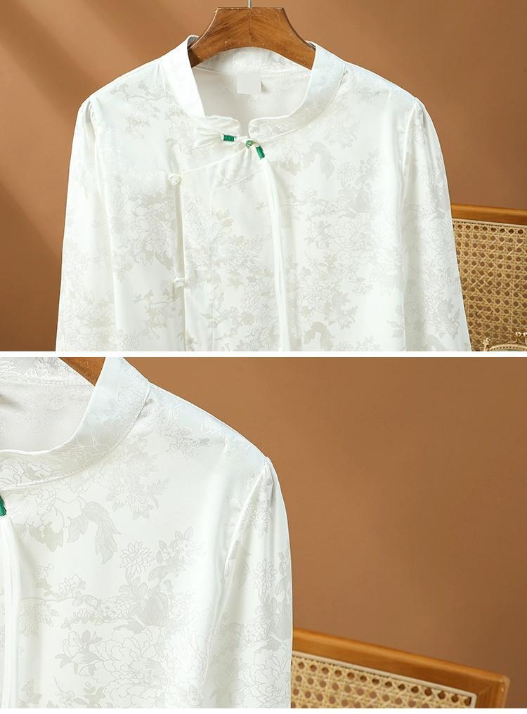 eign trade counter ブランドテールグッズ中国風改良プレートボタンスタンドカラーシャツ女性の国民風重工業ジャカードアセテートトップ秋 オータム 秋物 sine15247128533