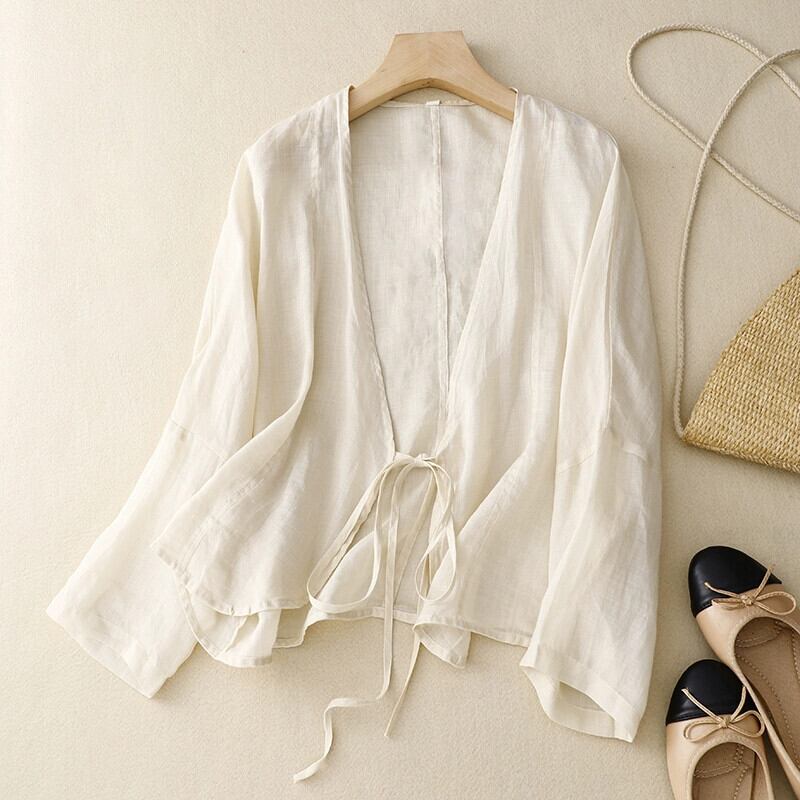 カウンタークリアランスグッズライトコットンとリネンの日焼け止めカーディガンレディースルーズ通気性リネンエアコンシャツトップ sine75032547885
