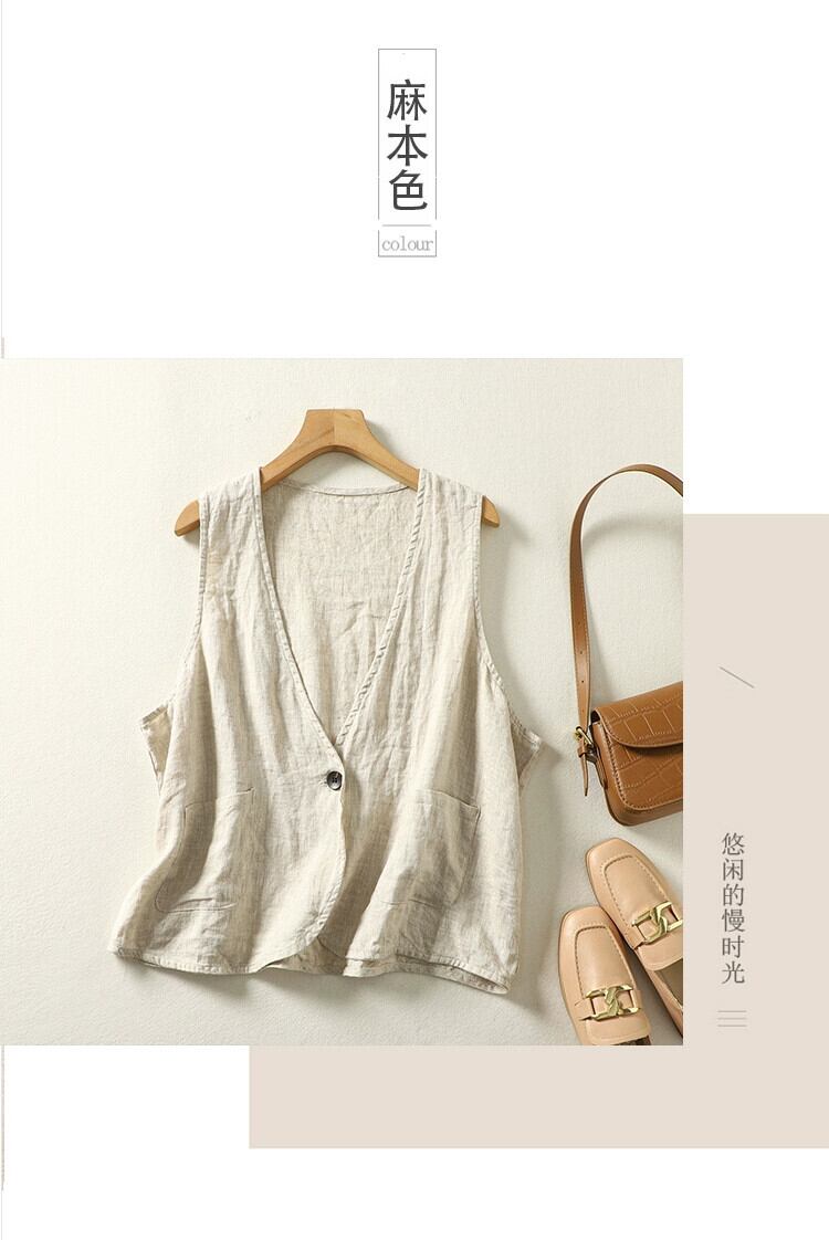 牛クリアランス高級品リネンチョッキベストレディースルーズVネック綿麻ノースリーブトップ夏 コットン サマー 夏物 sine4181300542