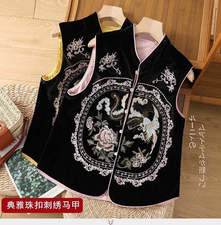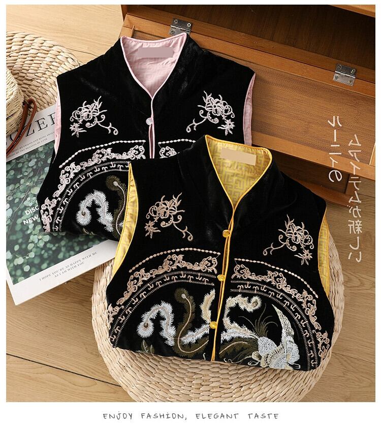 クリアランスカウンター引き出し最終在庫レトロ中国風重工業刺繍 V ネックチョッキベストジャケット女性 Vネック sine48447952311