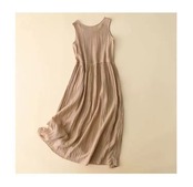 クリアランスカウンターストア最後の在庫レディースコットンとリネンのベストドレスウエストタイリネンAラインサスペンダースカート sine27162892221