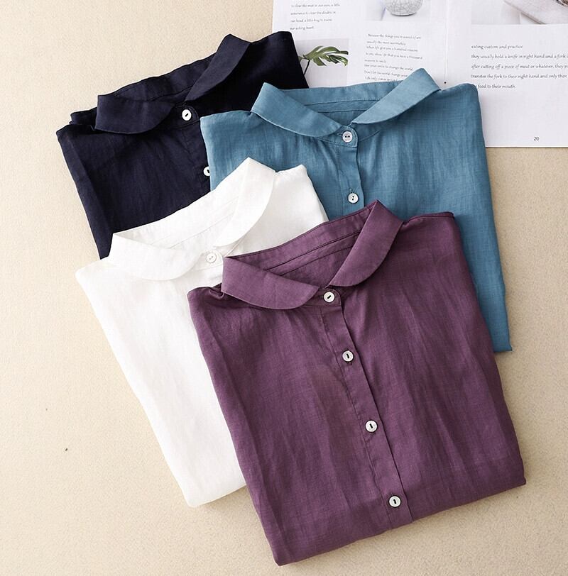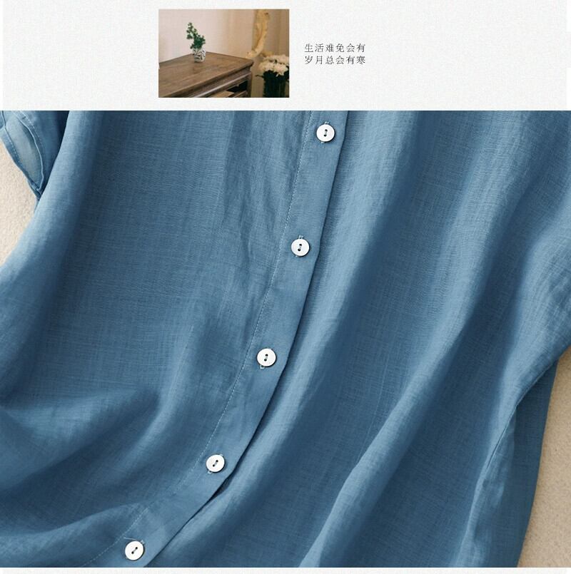 eign trade counter ブランドテールグッズ夏のライトリネン半袖シャツ女性のルーズカジュアルコットンとリネンの人形襟トップ サマー 夏物 sine86988113173