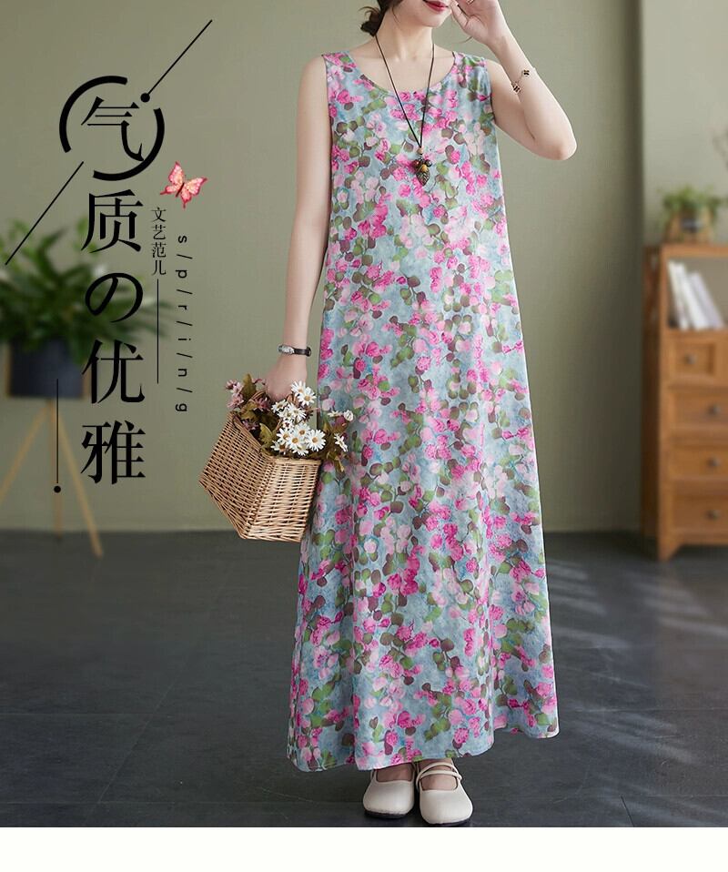 大手ブランドテールグッズのクリアランスカウンター撤去 レディース ラミー花柄ワンピース ゆったり 大きいサイズ リネン ノースリーブ ベスト ロングスカート 大きめサイズ sine83710384862
