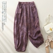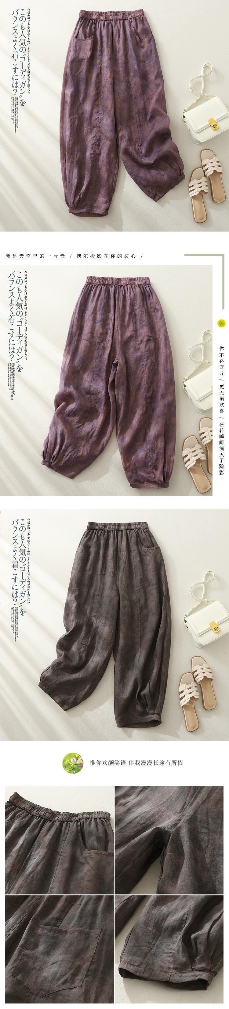 ディスカウントストアショッピングモール撤退レトロ絞り染めコットンとリネンブルマーレディースカジュアルハイウエストリネン9点ハーレムパンツ ショーツ sine73316927809