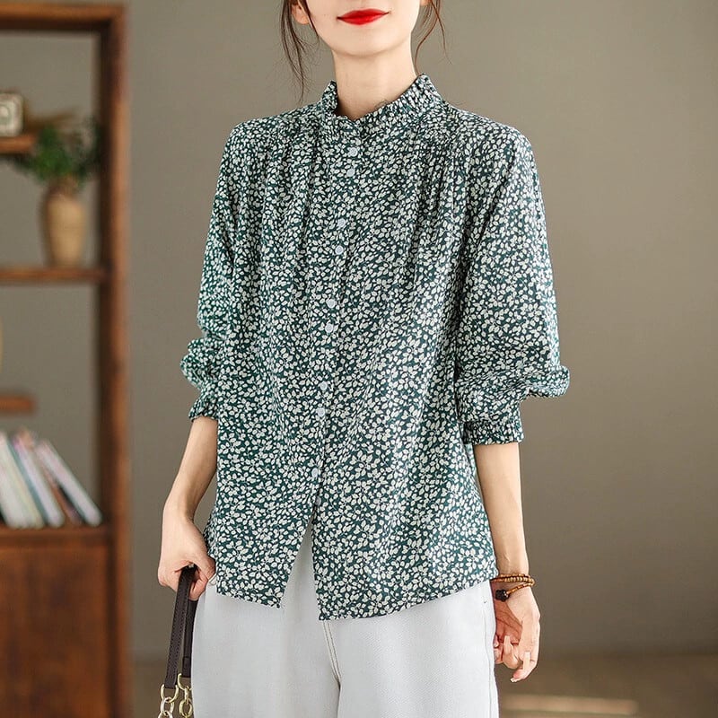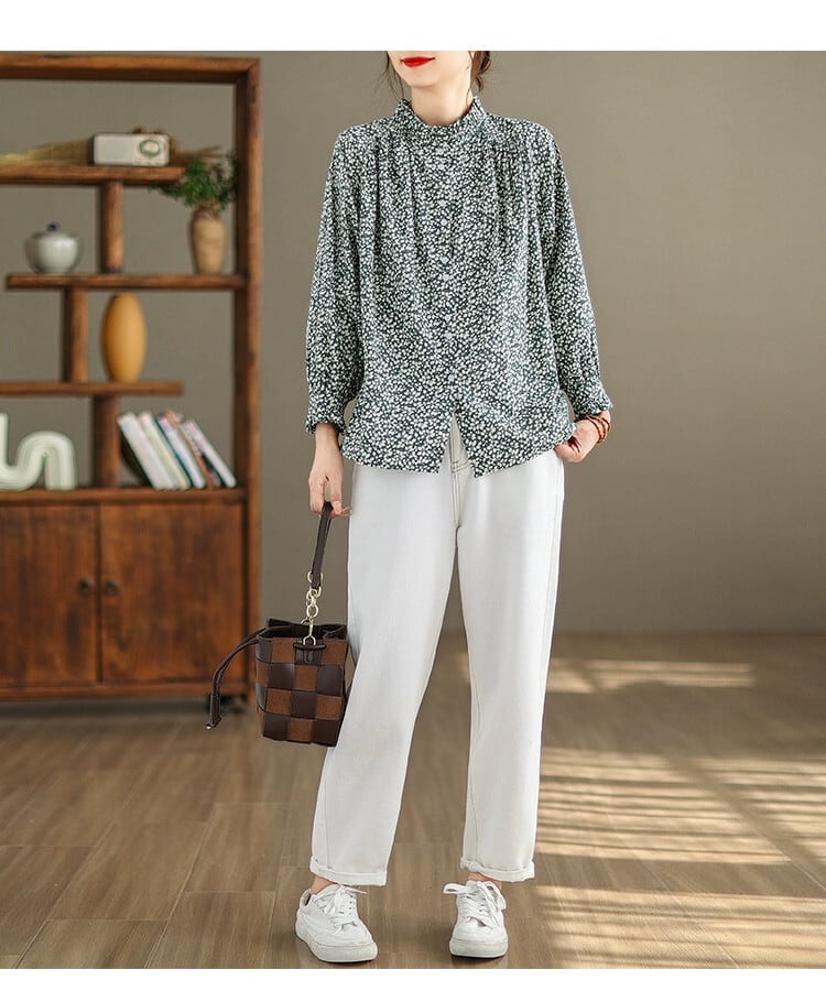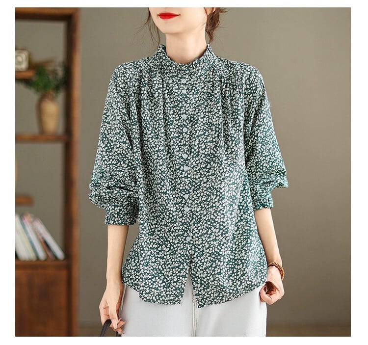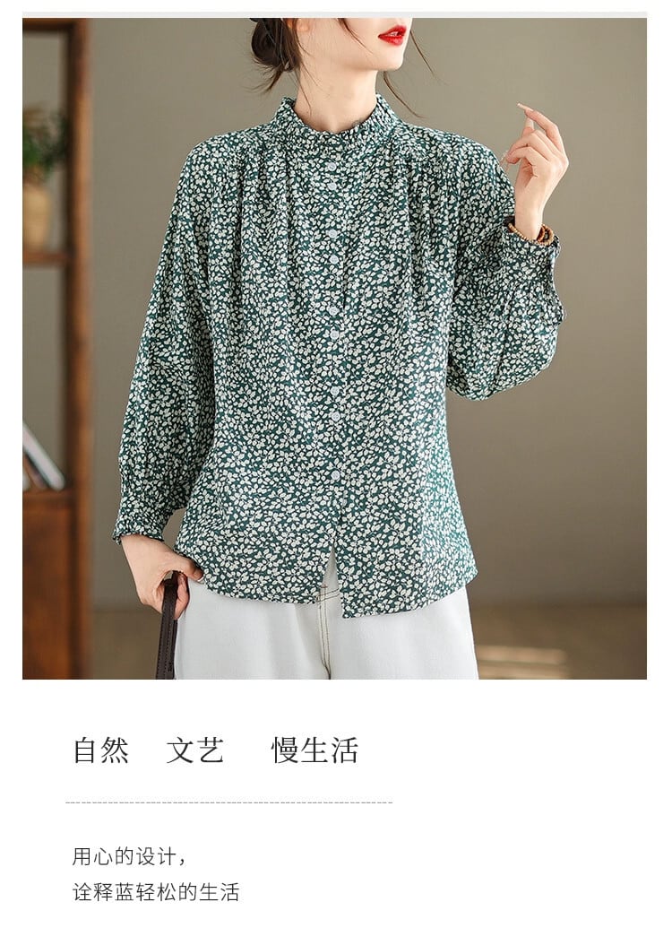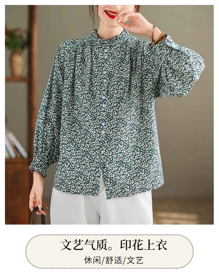 Eign Trade 輸出ブランドテールグッズレトロ花柄長袖シャツ女性の芸術的なルーズカジュアルスタンドアップカラーシングルブレストトップ ロング sine79667011027