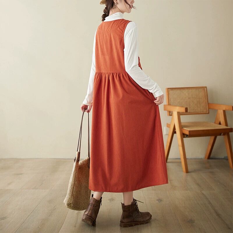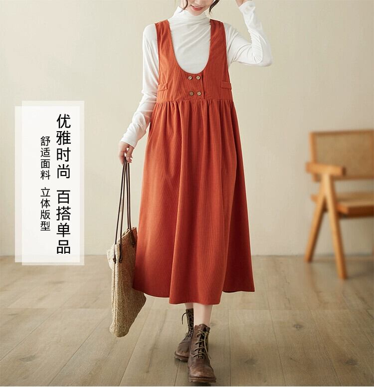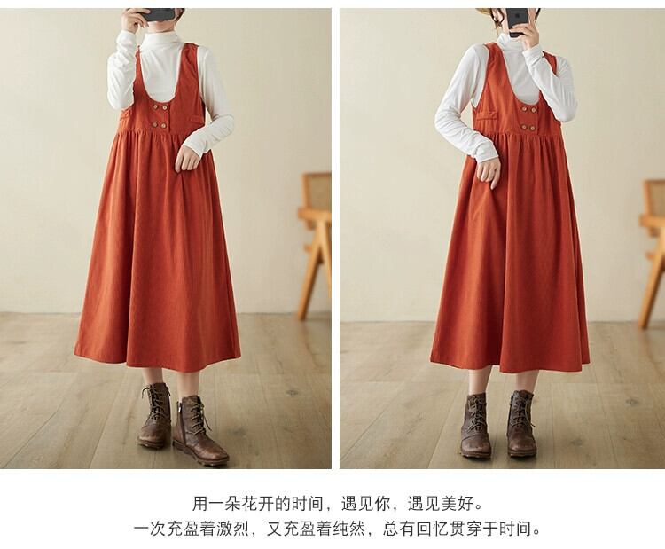ese オリジナル eign trade ブランド ピンストライプ サスペンダー ドレス レディース ゆったり 大きいサイズ ミドル丈 コーデュロイ ベストドレス 大きめサイズ sine87735309650