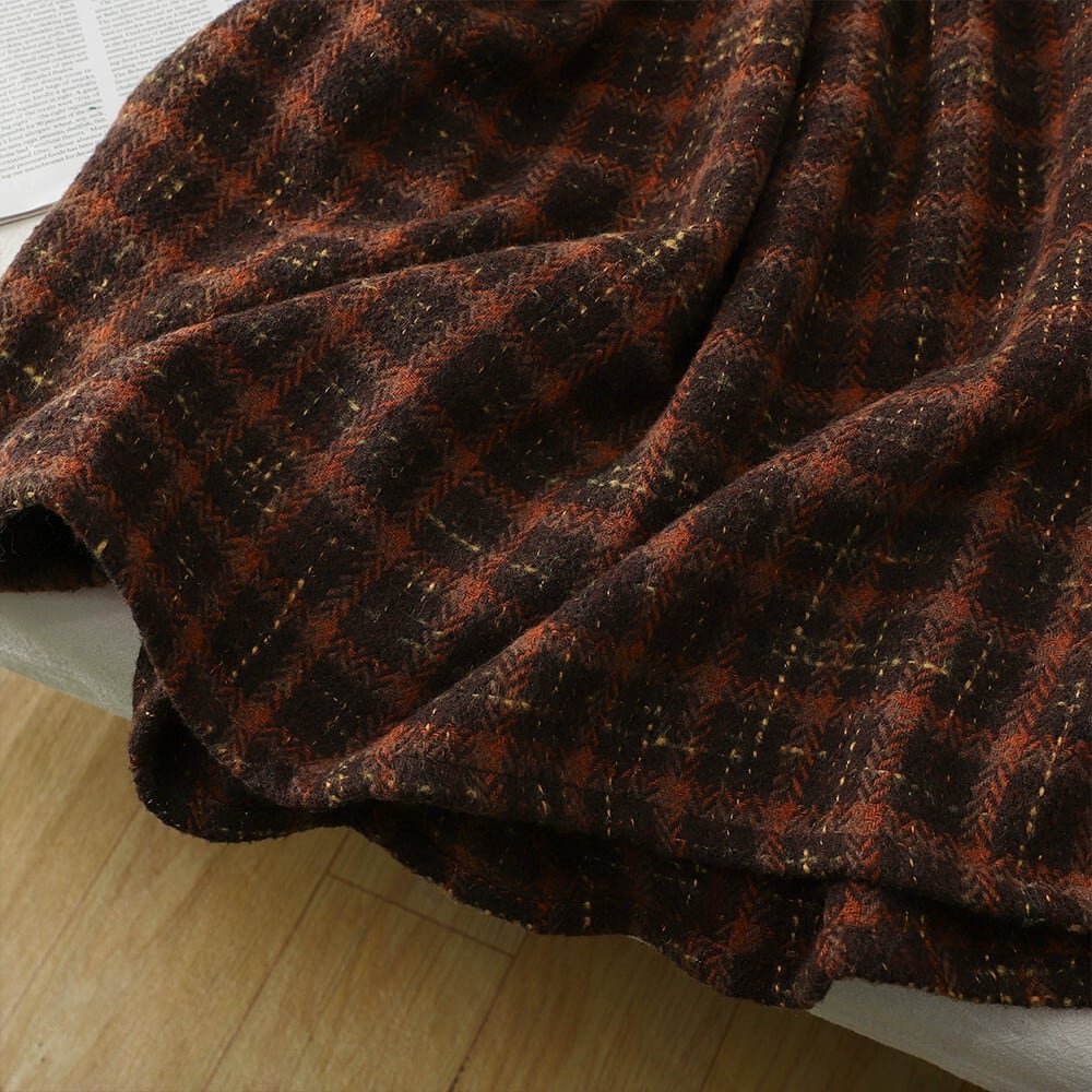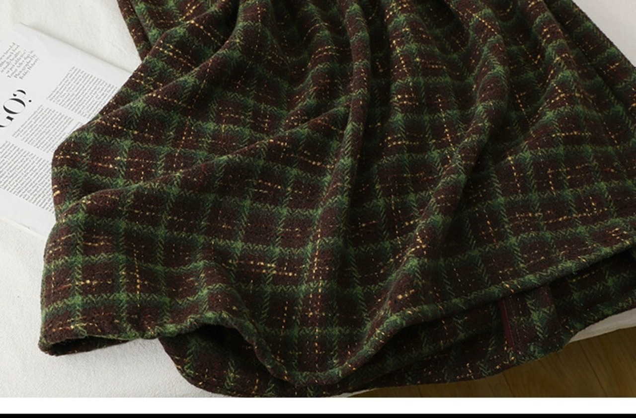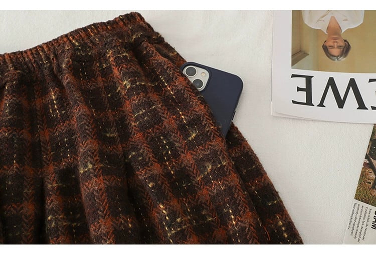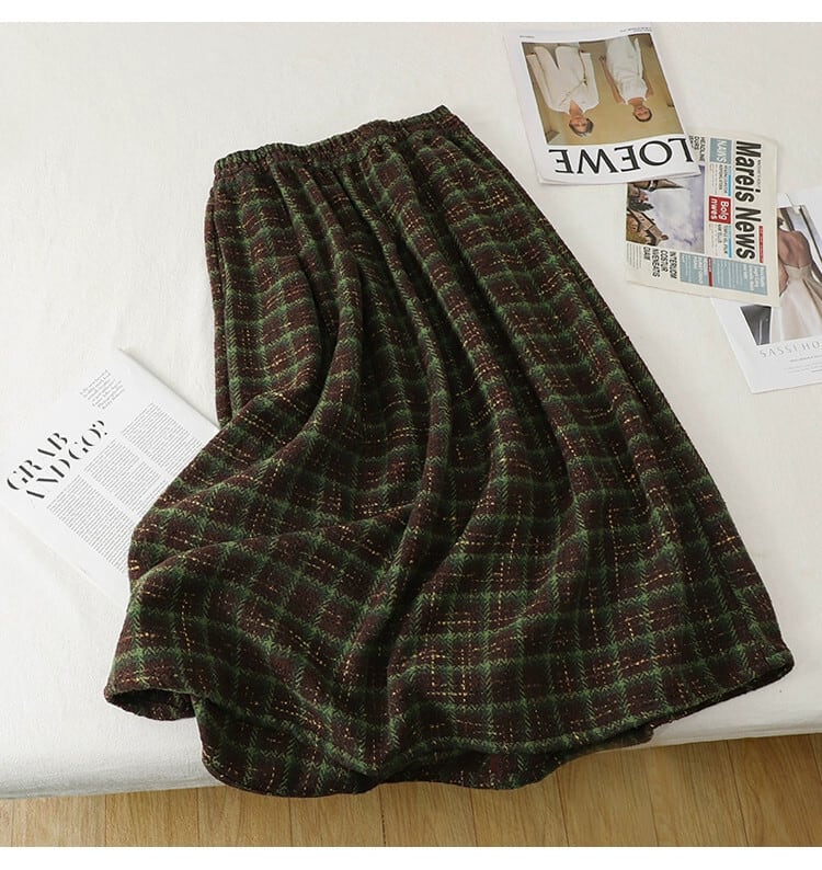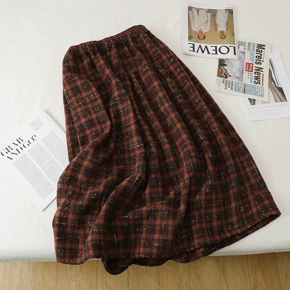 ese オリジナル eign trade ブランドレトロチェック柄ウールスカート女性のルーズハイウエストスリムウール A ラインスカート Aライン sine46167395036