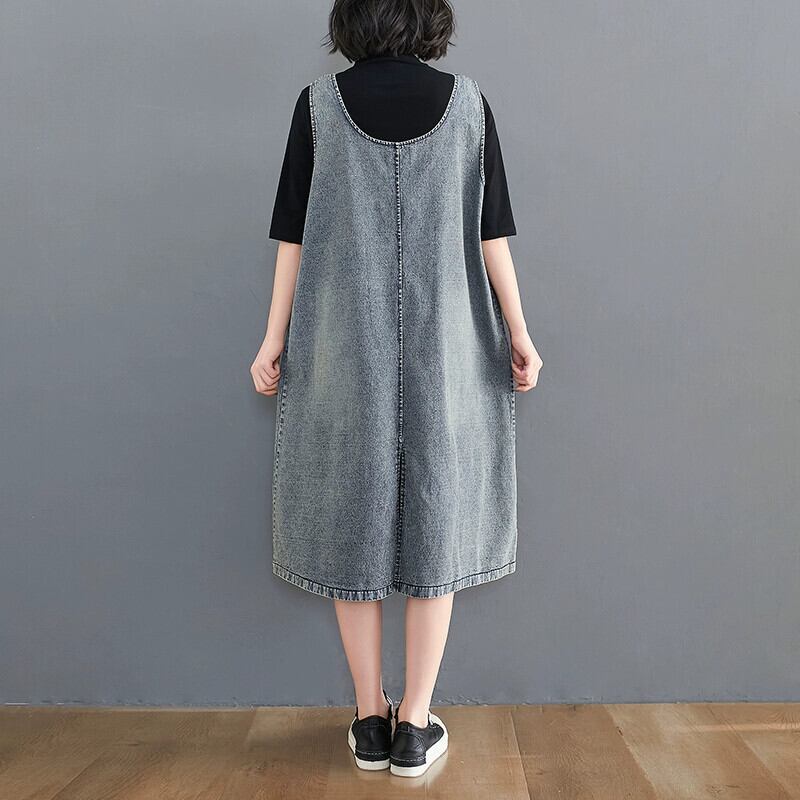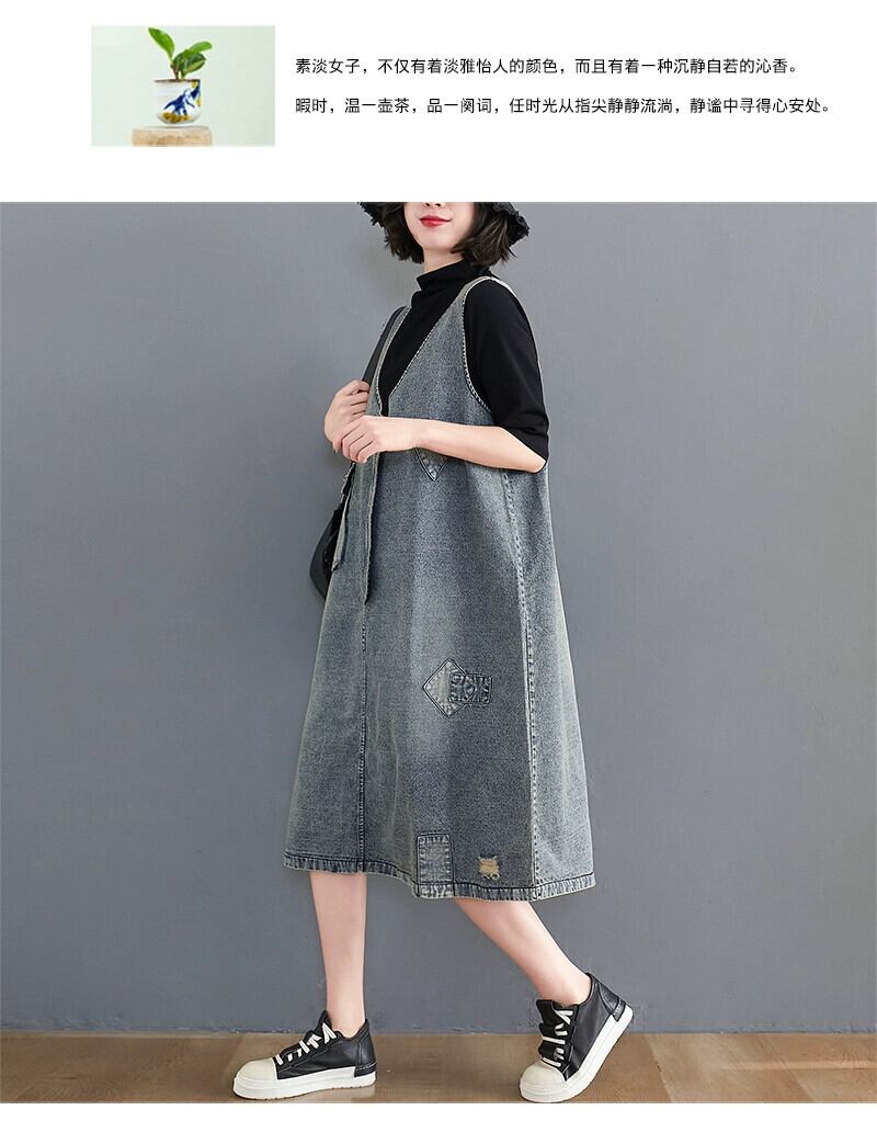 怠惰なスタイルのプラスサイズの女性のデニム サスペンダー スカート ルーズ ファット mm ダメージ加工パッチ洗浄済みミッドレングス ベスト ドレス 大きめサイズ sine13017303441