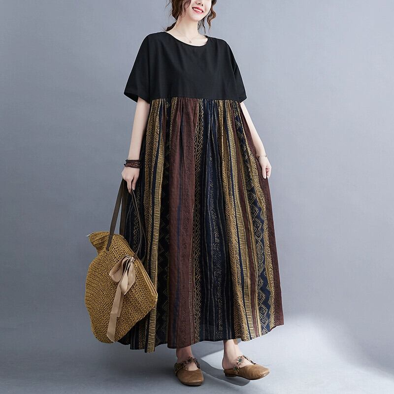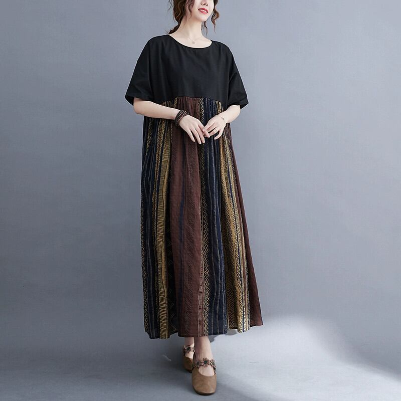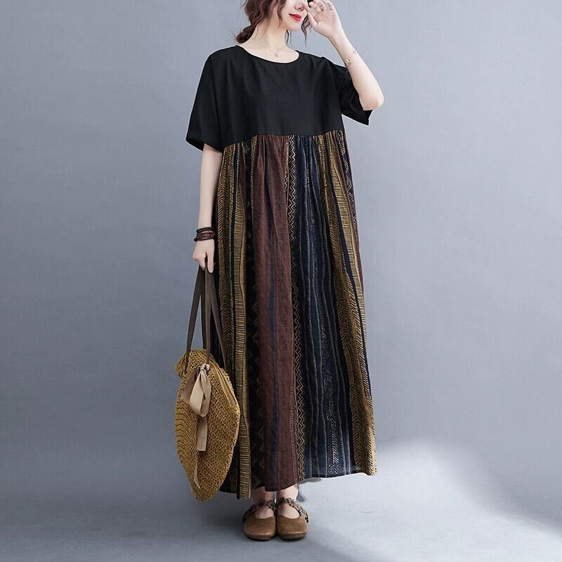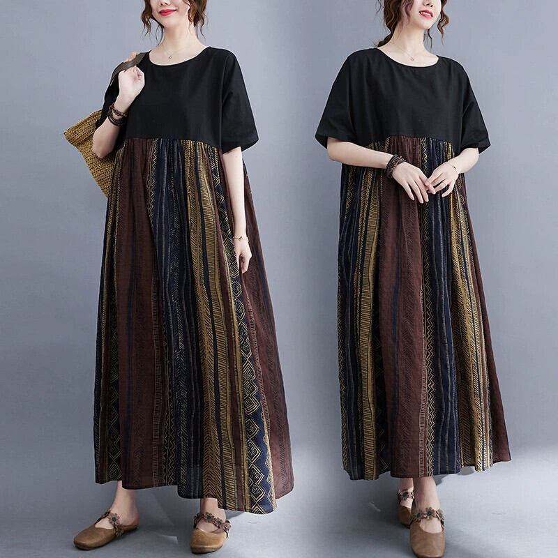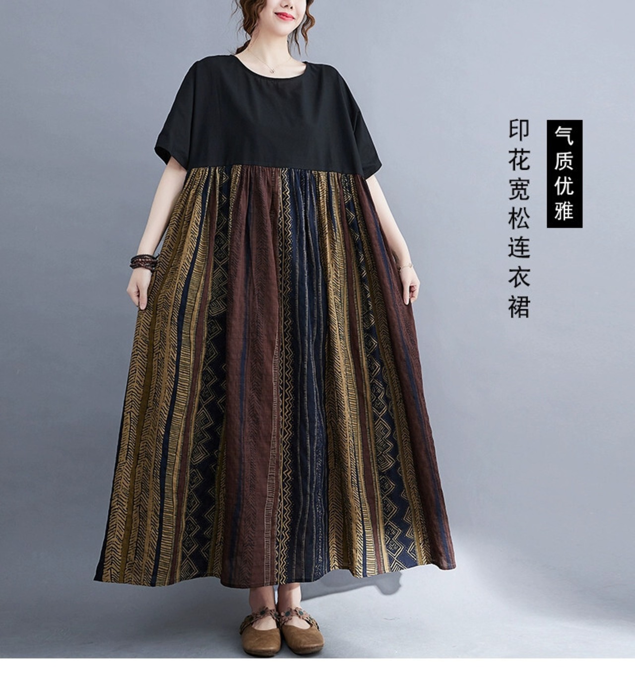 お腹カバーコットンとリネンドレス 2022 夏ルーズプラスサイズ大きいサイズ 200 ジンレトロプリントリネンローブ 大きめサイズ サマー 夏物 sine34317516402